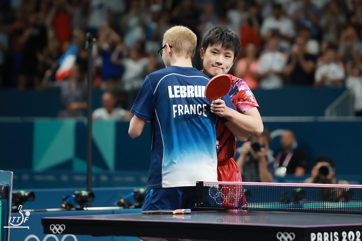 張本 2番の準備があったので、僕はほとんど試合は見られませんでしたが、A.ルブランは普通じゃないメンタルの強さだし、ゴズィーにしてみれば、10何年間フランスのエースでやってきて、一生に一度のビッグチャンスですよね。ルブラン兄弟が現れたからこそ自分に巡ってきたオリンピックのメダルのチャンス。このダブルスさえ取れば、あとはF.ルブランが2点取ってくれる! その思いに2人が勝てなかったということだと思います。右左のペアだから右右より有利とか、戦術がどうこうとか、そういう問題ではなかったということだと思います。