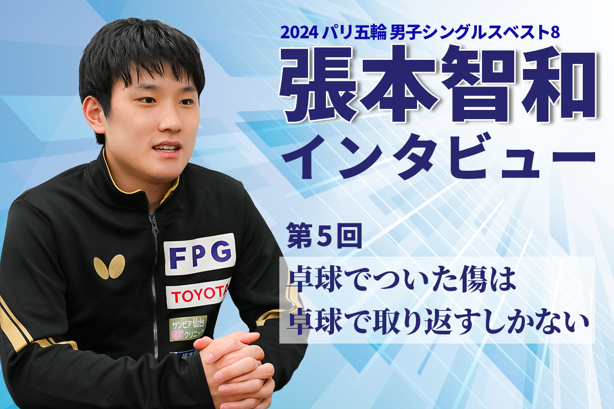 パリ五輪卓球競技(2024年7月27日〜8月10日)の2週間にわたる激闘を終え、パリをあとにしてから約1週間後のある日、卓球レポートは張本智和(智和企画)にインタビューする機会を得た。ビッグマッチの後では恒例となったインタビューに姿を現した張本は、軽妙な冗談を交えながらスタッフにあいさつをすると、早くオリンピックの話を聞いてほしいと言わんばかりの勢いで口火を切った。