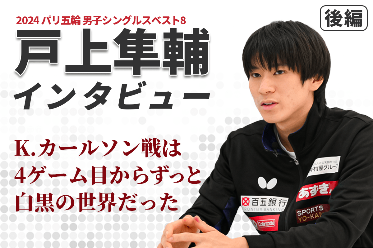 「ノーメダルですいません」と自嘲気味なあいさつをしながら、うつむき加減で部屋に入ってきた戸上に、高承睿(中華台北)をストレートで破り、最高のホームで勢いづいたA.ルブラン(フランス)を猛々しい攻撃卓球で破ったファイターの姿を重ねることは難しかった。