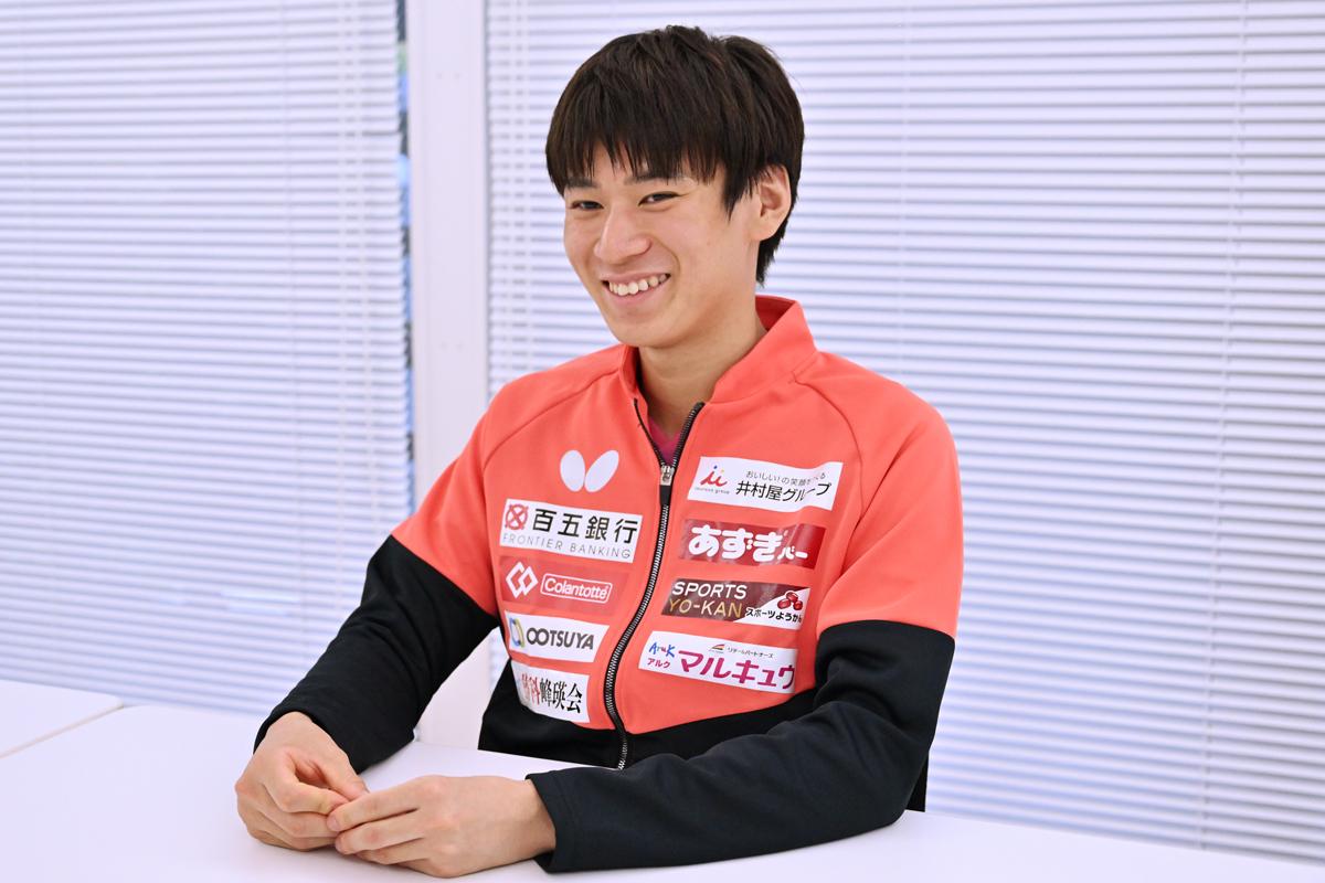 戸上隼輔(以下、戸上) さすがに日本人同士が序盤で当たるとは思っていませんでした。ドローを見ていましたが、シードの選手が先に決まって、なかなか自分の名前が出てこなくて、今年も王楚欽(中国)のところかななんて考えていたら、ぱっと日本の国旗が見えて「あ、自分かな」と思ったら、やっぱりそうでした。結局ベスト16決定戦(3回戦)で張本(張本智和)と当たることになって「マジか......」という感じでした。