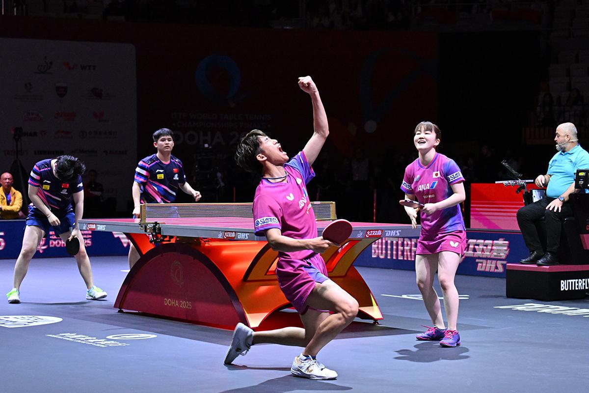 吉村が世界卓球2025ドーハでの混合ダブルスと男子シングルスの戦いぶりを振り返りつつ、混合ダブルスの秘けつについても語ってくれたインタビューをお届けする。