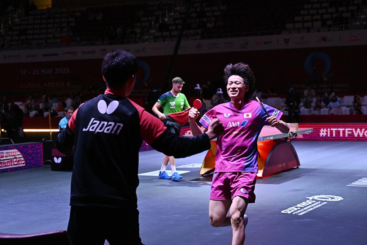 選手生活を電撃引退し、戸上隼輔(井村屋グループ)の専属コーチとなった上田仁。コーチとして初陣となった世界卓球2025ドーハでは、戸上の男子シングルスベスト8をベンチで支え、上々のコーチデビューを果たした。