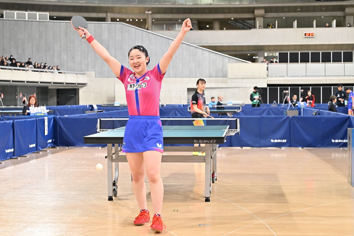 張本 ほっとしましたね。やっぱりラストの1年で負けて終わりたくはなかったので、勝ってジュニアの部を卒業できてうれしいですし、石川さん(石川佳純)と同じ4連覇の記録に並んだので、すごく光栄です。