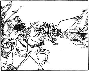 この間に、田単は着々と戦いの準備を行った。城内の千頭余の牛を集め、大きな龍を描いた布をはおらせ、角には短刀を結び、尾には油を浸したワラ束を結びつけた。更に、5千名の精鋭な兵士を選び、待機させた。