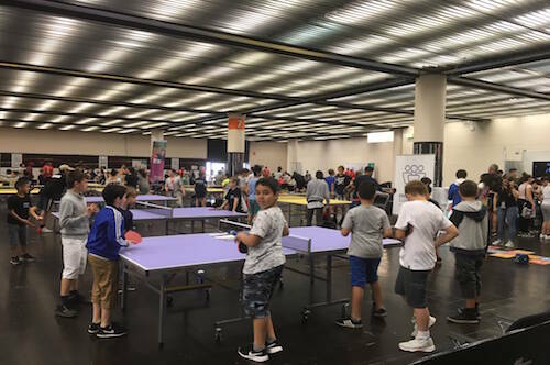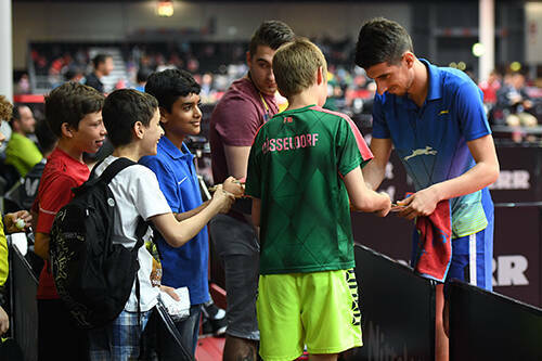 デュッセルドルフ市内から3,000人を超える小学生たちが世界選手権大会の会場に集まり、卓球体験&試合観戦を楽しんでいる。これは、デュッセルドルフの子供たちに卓球を体験してもらおうと大会組織委員会、ドイツ卓球協会、デュッセルドルフ市が協力して企画したもの。