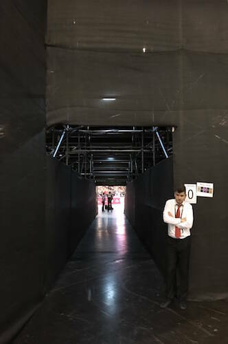 メイン会場の入り口 大会も4日目。これくらいになるとセキュリティー・チェックの担当者やメイン会場入り口で僕らのADカードをチェックする担当者とだんだん顔見知りになってくる。特に、メイン会場入り口の担当者とは、試合の合間にセキュリティー・ゲートを通るたびに何度も顔を合わせるので、そのうち「グーテンターク(こんにちは)」「ダンケシェン(ありがとうございます)」など簡単なコミュニケーションを取るようになって仲良くなるものだ。