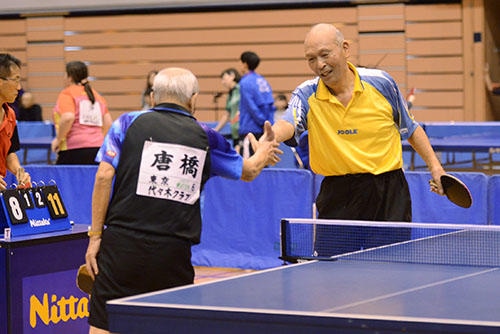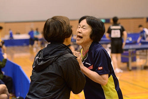 もちろん選手たちは全日本チャンピオンの称号を目指して全国の予選を勝ち上がってきた猛者たちだ(エイティ、ハイエイティは予選なし)。だから、もちろん真剣だ。しかし、ミスしたときの表情や勝ったときの喜び、長年のライバルと握手を交わすときの笑顔には、どこか大人の余裕のようなものが漂う。一方で、大の大人がエッジの判定をめぐって対戦相手や学生審判に食ってかかるその姿もお手本にはならないかもしれないが、それもやはりとても魅力的だ。そして、その魅力は卓球の魅力でもある。