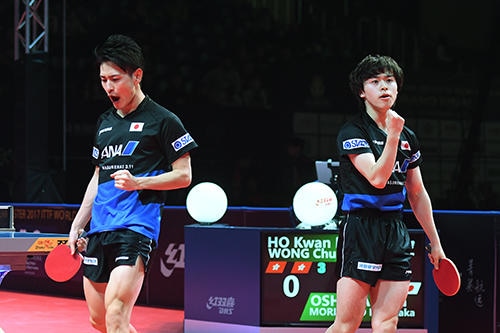 試合全体を振り返ると、日本ペアとしては非常に苦しい試合展開だったといえるだろう。香港ペアは黄鎮廷がフリック、ストップといった多彩な台上技術とラリー戦での強さを見せて何鈞傑をけん引。何鈞傑も果敢なチキータから得点を奪うなど、ラリーの主導権を握られるケースが続いた。