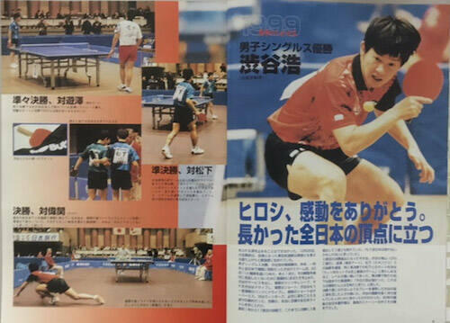 全国中学校卓球大会(全中)3連覇、全国高校選手権大会(インターハイ)2年連続三冠王、全日本学生選手権大会(全日学)は楊玉華(東北福祉大)の4連覇の前にタイトルを逃したものの、平成元年関東学生リーグ戦では36勝3敗の最高成績で特別賞を受賞。松下浩二、松下雄二、伊藤誠らが揃う黄金世代でありながら、ひとり悠々と前人未到の記録を打ち立ててきた渋谷浩。1990年代における全日本選手権大会は、毎年のように彼が話題の中心にいて、多くのファンは「いつ渋谷が優勝するのか」に注目していた。