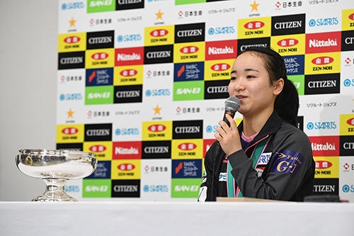 昨年の全日本での敗戦以降、苦しい時期が続いた伊藤。昨年のジャパンオープンでは準々決勝で王曼昱(中国)に敗れ、涙を流す場面もあったがそうした苦境を残り越え、進化したプレーで全日本のタイトルを手にした。伊藤は4月29日~5月6日に開催される世界卓球2018ハルムスタッドの日本代表の団体戦メンバーに内定しており、3カ月後に迫った世界卓球について問われると「チームに貢献できるように皆で金メダルを勝ち取りたいです。世界卓球は本当に楽しみですし、日本で結果を残してきた中で海外選手にどのくらい通用するのか楽しみです。特に中国選手は勝たないといけない存在だと思うので世界卓球で勝ってオリンピックにつなげていきたいです」と語った。