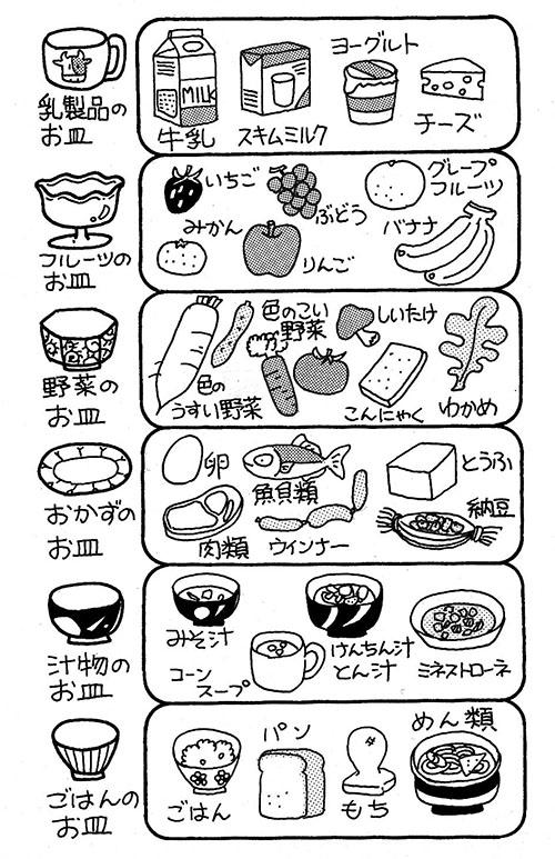 食事はしっかり3食(必要あれば4食)食べ、その際に6つのお皿(ごはんのお皿、汁物のお皿、おかずのお皿、野菜のお皿、フルーツのお皿、乳製品のお皿)をそろえる努力をしましょう。中でも、必ず朝食を取ることが必要です。朝食を取らずに運動することや、偏ったものしか食べないで運動することは、運動するエネルギーや必要な栄養素が十分でないことを意味します。