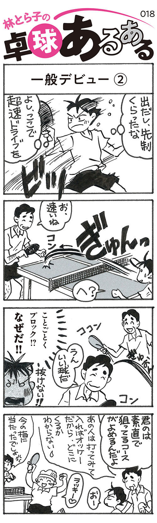 [マンガ] 4コマ漫画 「林とら子の卓球あるある」18 一般デビュー2 2018.09.12 ツイート シェア 速いだけじゃ抜けない(^o^) 次回もお楽しみに! これまでのマンガはこちら \この記事をシェアする/