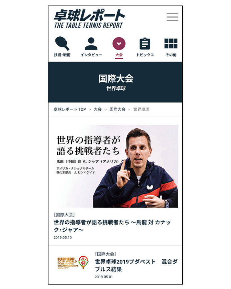 仮に「世界卓球」を選んだとしましょう。そうすると、世界卓球の記事の一覧が表示されます。