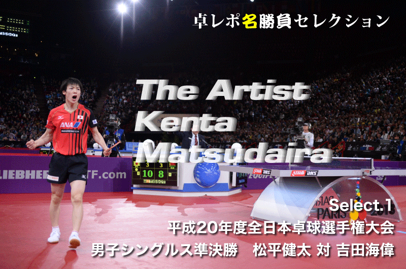 初めに、吉田海偉(東京アート/当時 グランプリ大阪)との平成20年度(2009年1月)全日本卓球選手権大会(以下、全日本)男子シングルス準決勝をお届けしよう。