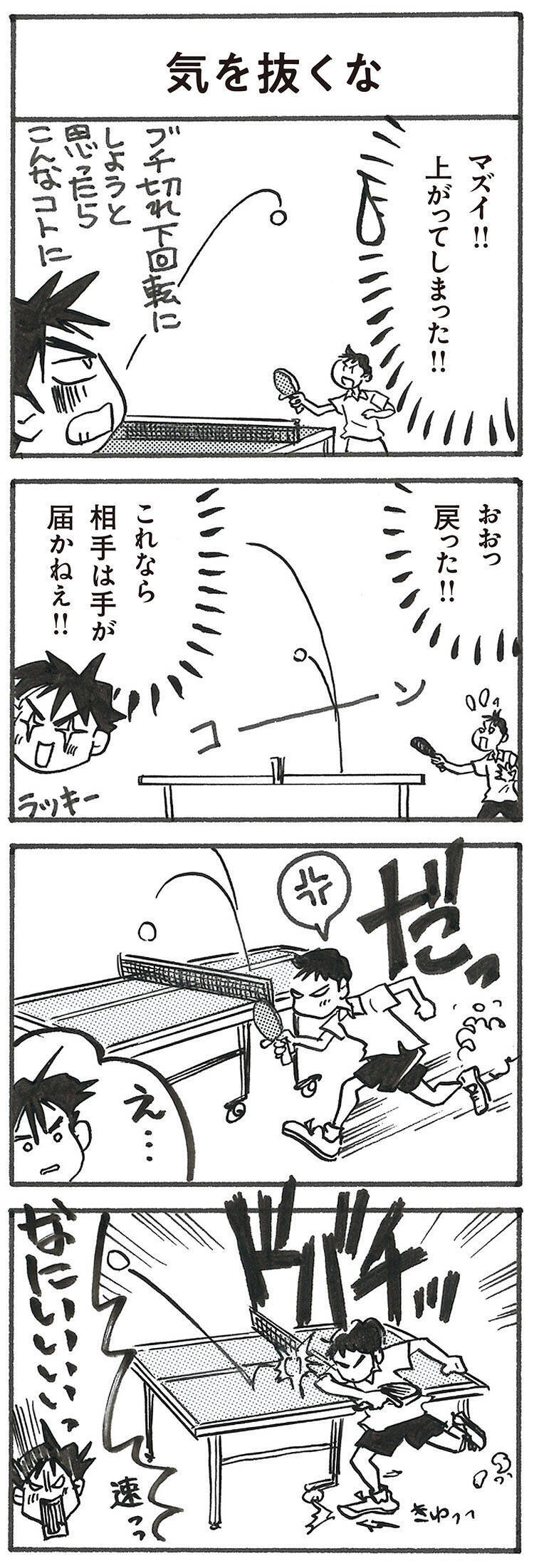 4コマ漫画 「林とら子の卓球あるある」112 気を抜くな