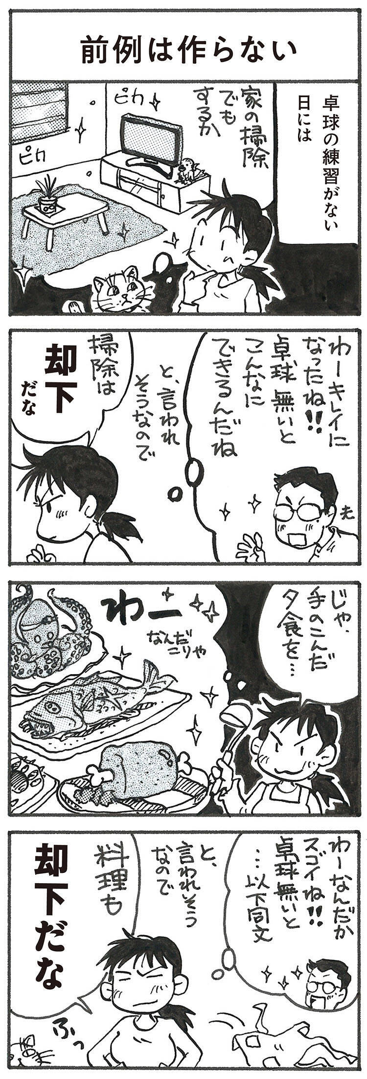 4コマ漫画 「林とら子の卓球あるある」113 前例は作らない
