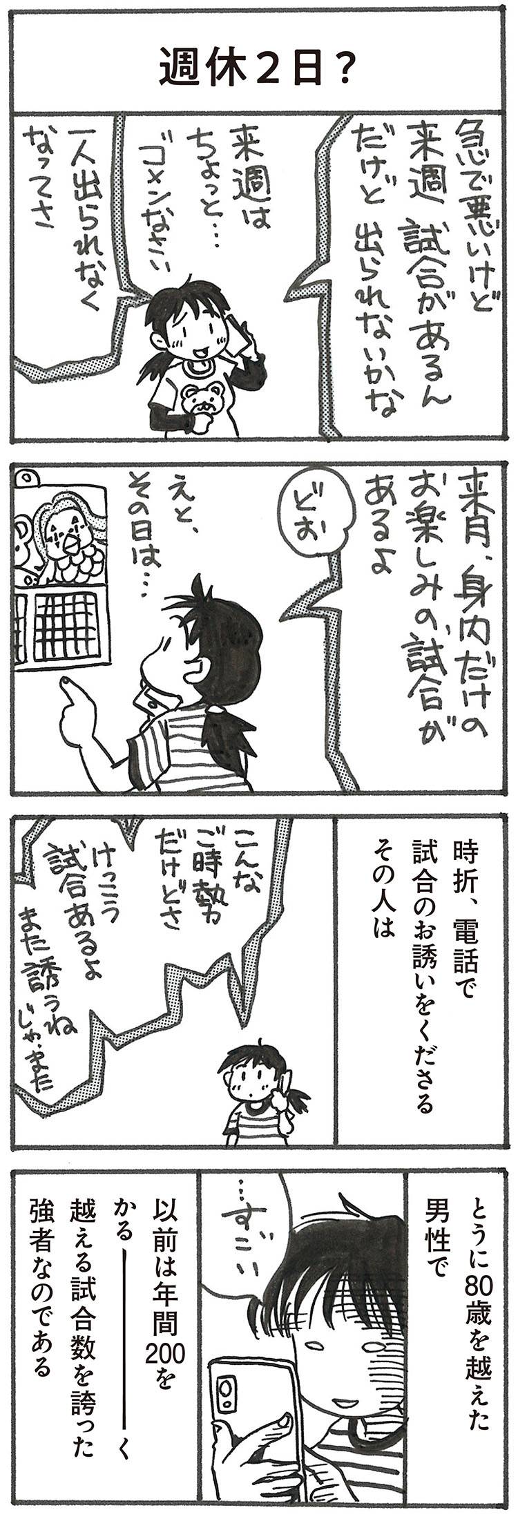 4コマ漫画 「林とら子の卓球あるある」125 週休2日?
