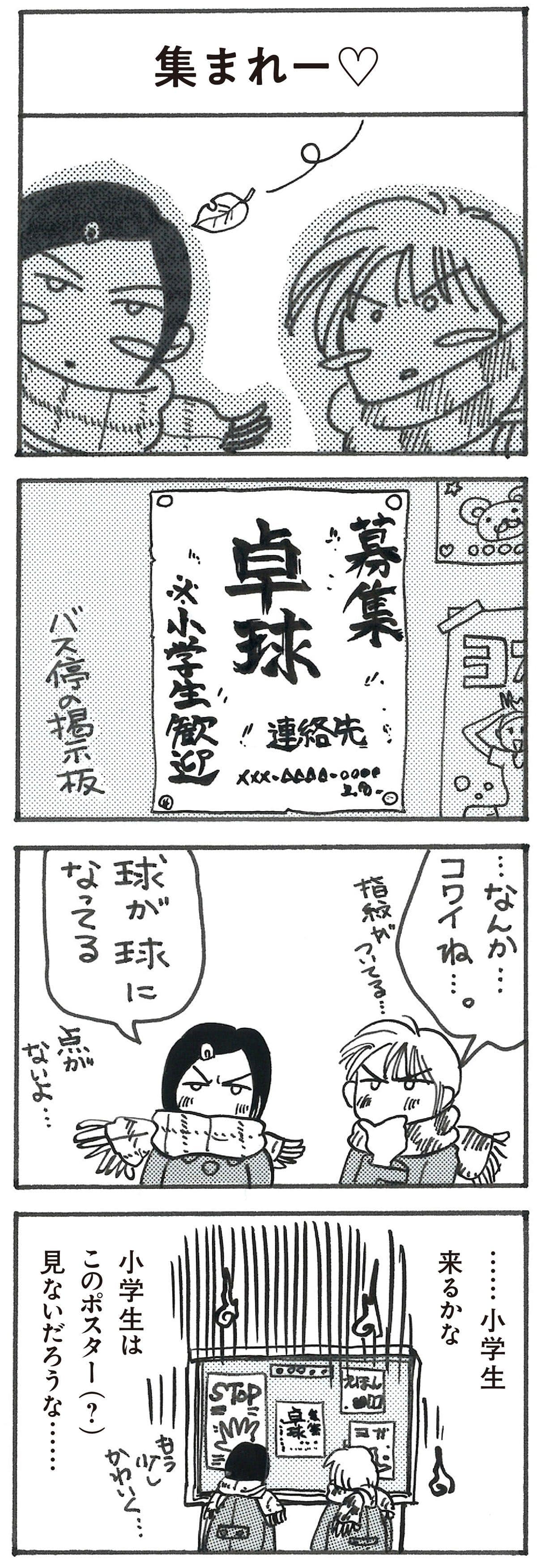 4コマ漫画 「林とら子の卓球あるある」141 集まれー♡