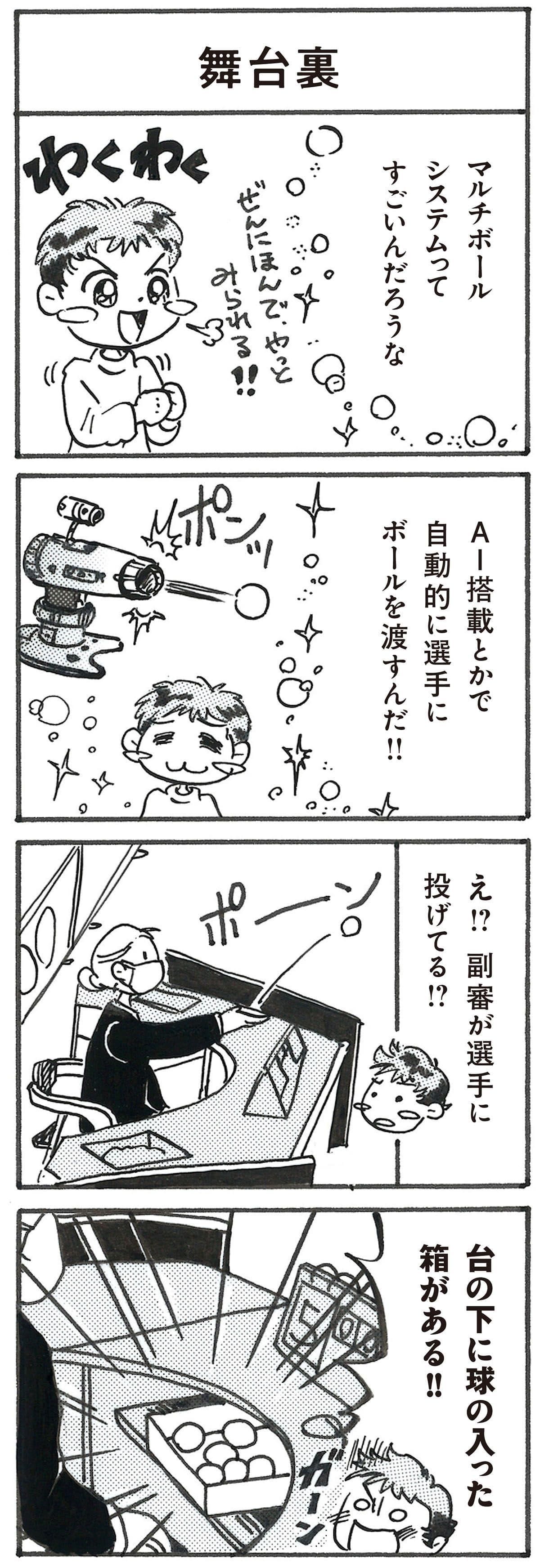 4コマ漫画 「林とら子の卓球あるある」142 舞台裏
