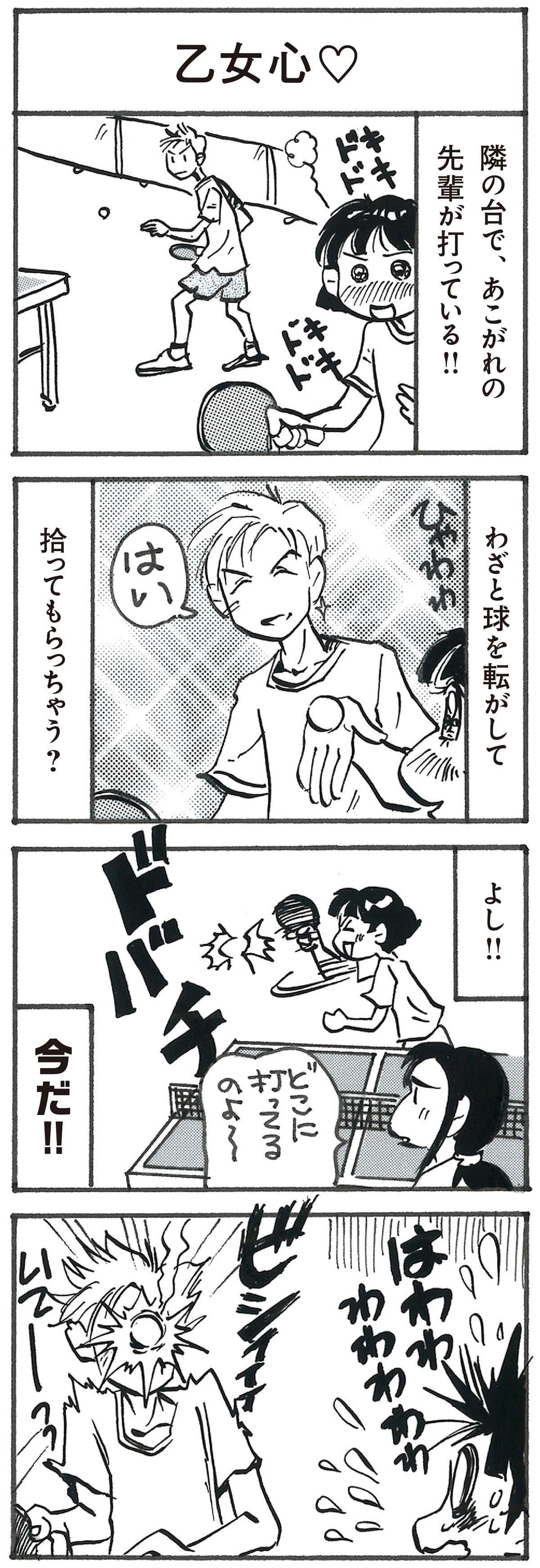 4コマ漫画 「林とら子の卓球あるある」155 乙女心♡