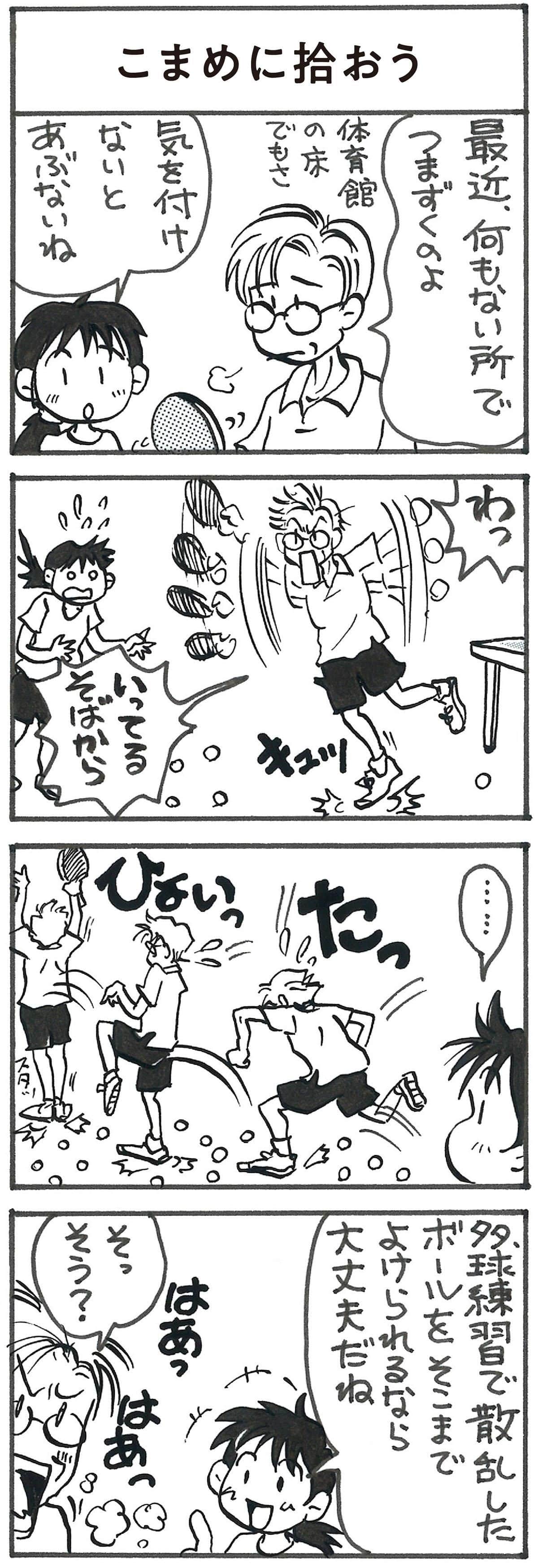 4コマ漫画 「林とら子の卓球あるある」156 こまめに拾おう