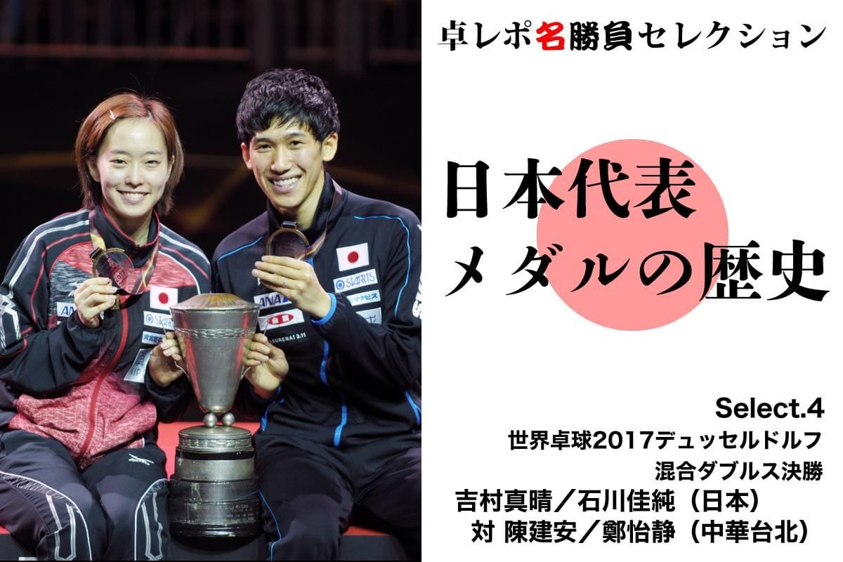 第4回は、2017年世界卓球選手権デュッセルドルフ大会混合ダブルス決勝、吉村真晴(愛知ダイハツ/当時 名古屋ダイハツ)/石川佳純(全農)対陳建安/鄭怡静(中華台北)の名勝負をお届けしよう。