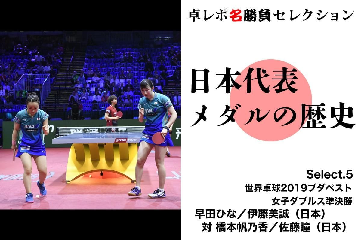 第5回は、2019年世界卓球選手権ブダペスト大会女子ダブルス準決勝、早田ひな/伊藤美誠(日本生命/スターツ) 対 橋本帆乃香/佐藤瞳(ミキハウス)の名勝負をお届けしよう。