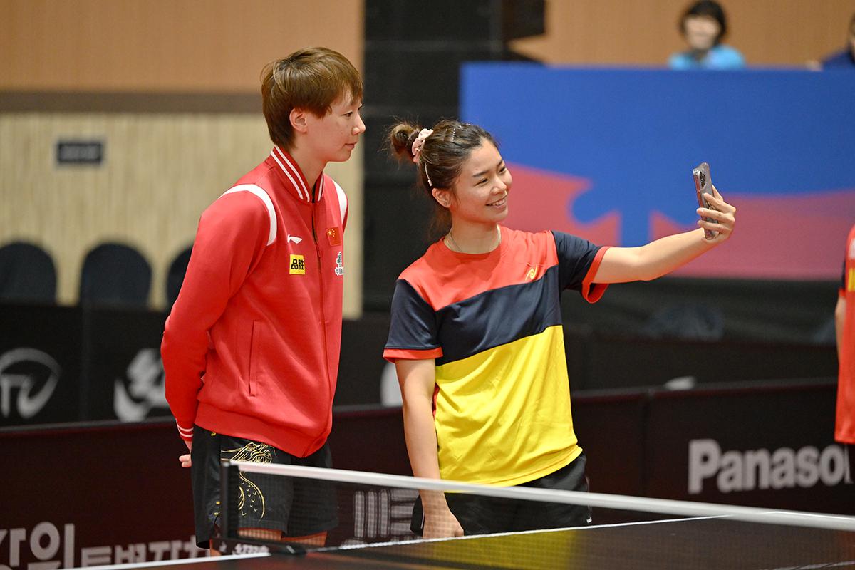 ※写真は女子団体予選リーグの中国対マレーシア戦後の一コマ