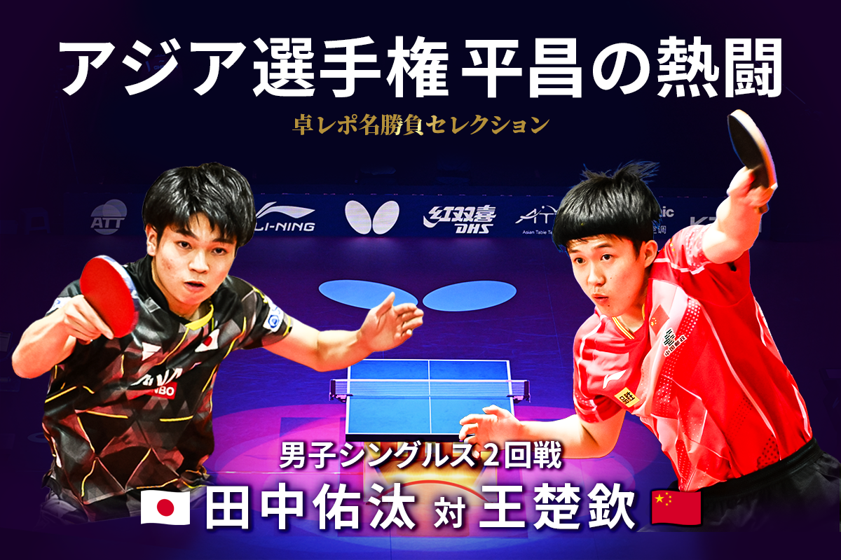 前回紹介した女子シングルス2回戦の早田ひな(日本)対李恩慧(韓国)戦同様、男子シングルスも序盤から熱闘が繰り広げられたが、中でもハイライトは田中佑汰(日本)対王楚欽(中国)の2回戦だ。