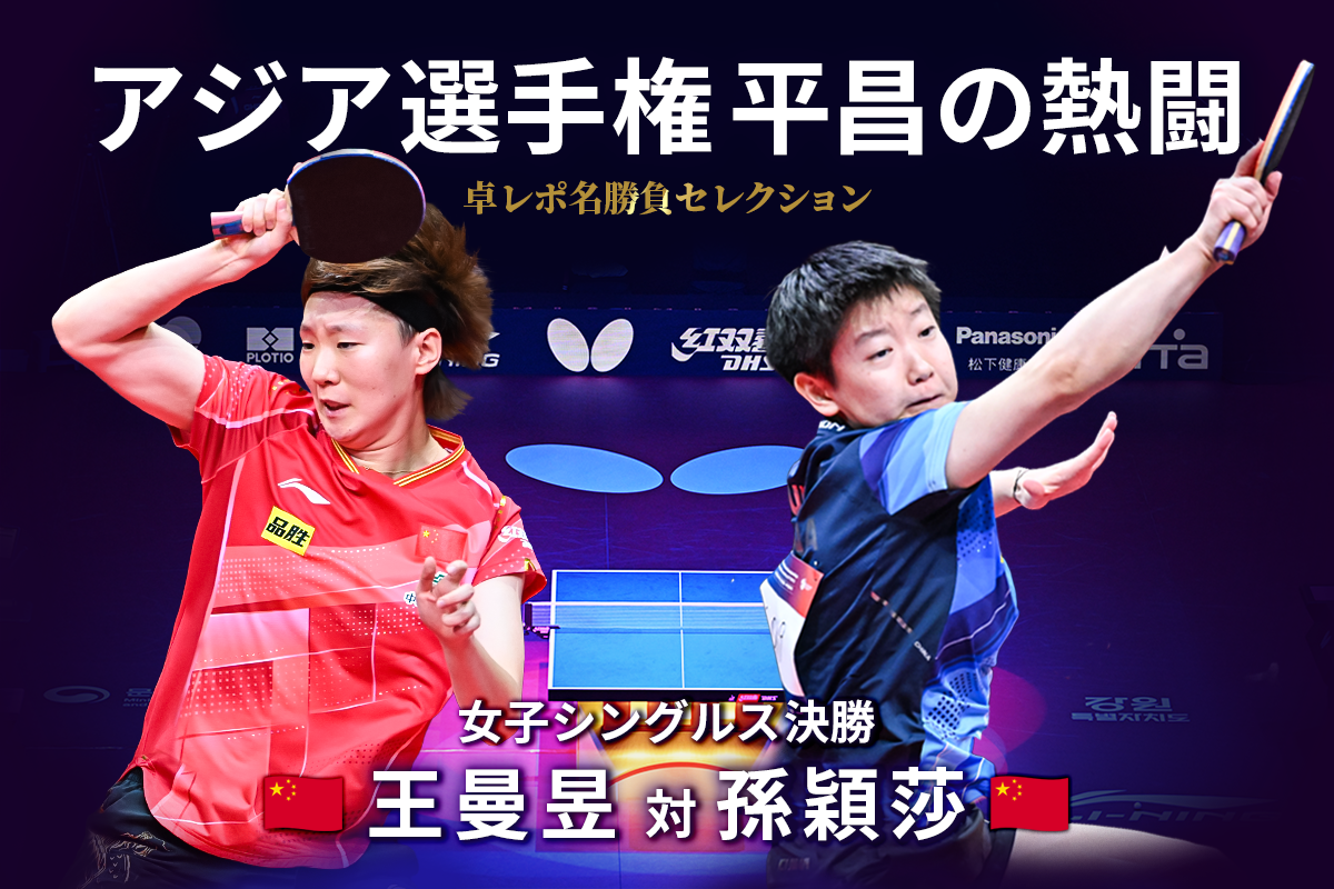 ステータスの高いアジア選手権を制して孫穎莎に追い付き追い越したい元世界女王の王曼昱と、王曼昱との差をさらに広げたい現世界女王の孫穎莎。ジュニア時代から名勝負を繰り広げてきた同世代のライバル同士による一戦は、当然のごとく最後まで目が離せない激闘になる。