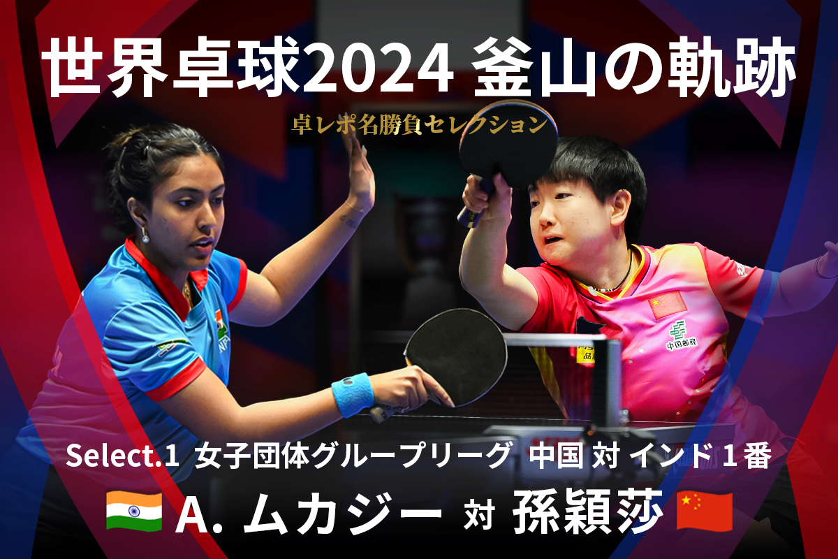 世界卓球2024釜山で繰り広げられた熱戦の数々から、初回は女子グループリーグの中国対インドの1番、A.ムカジー(インド)対孫穎莎(中国)をお届けしよう。