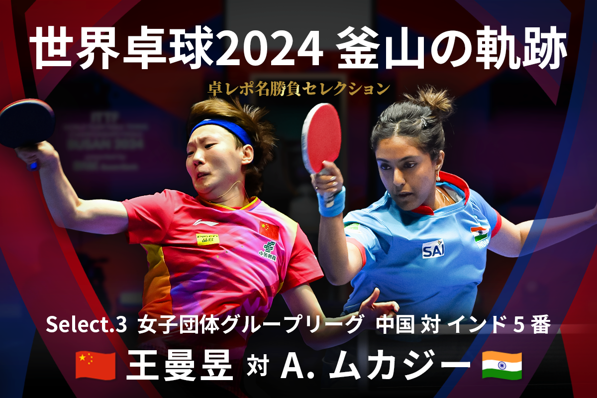 第3回は、女子団体グループリーグ中国対インドの5番、王曼昱(中国)対A.ムカジー(インド)の名勝負をお届けしよう。