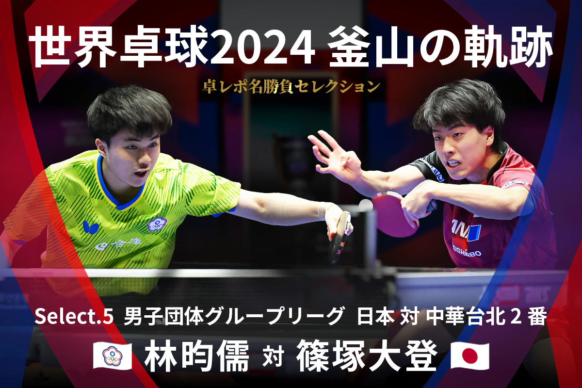 今回は、男子団体グループリーグ日本対中華台北の2番、林昀儒(中華台北)対篠塚大登(日本)の名勝負をお届けしよう。