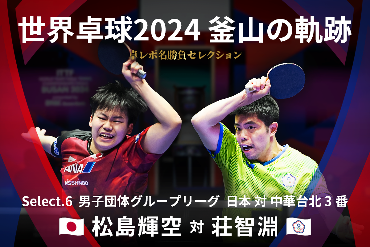 今回は、男子団体グループリーグ日本対中華台北の3番、松島輝空(日本)対荘智淵(中華台北)の名勝負をお届けしよう。