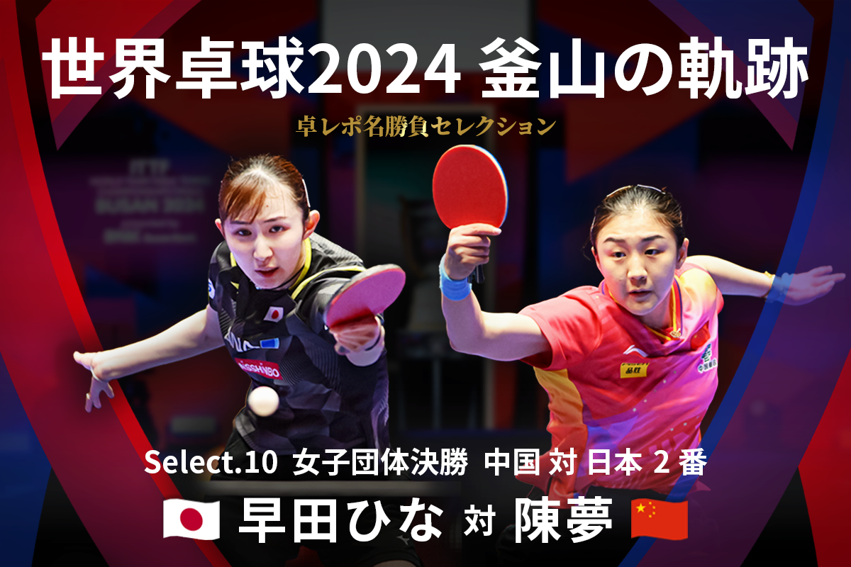 今回は、女子団体決勝の中国対日本の2番、早田ひな(日本)対陳夢(中国)の名勝負をお届けしよう。