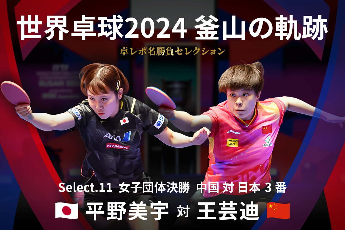 今回は、女子団体決勝の中国対日本の3番、平野美宇(日本)対王芸迪(中国)の名勝負をお届けしよう。