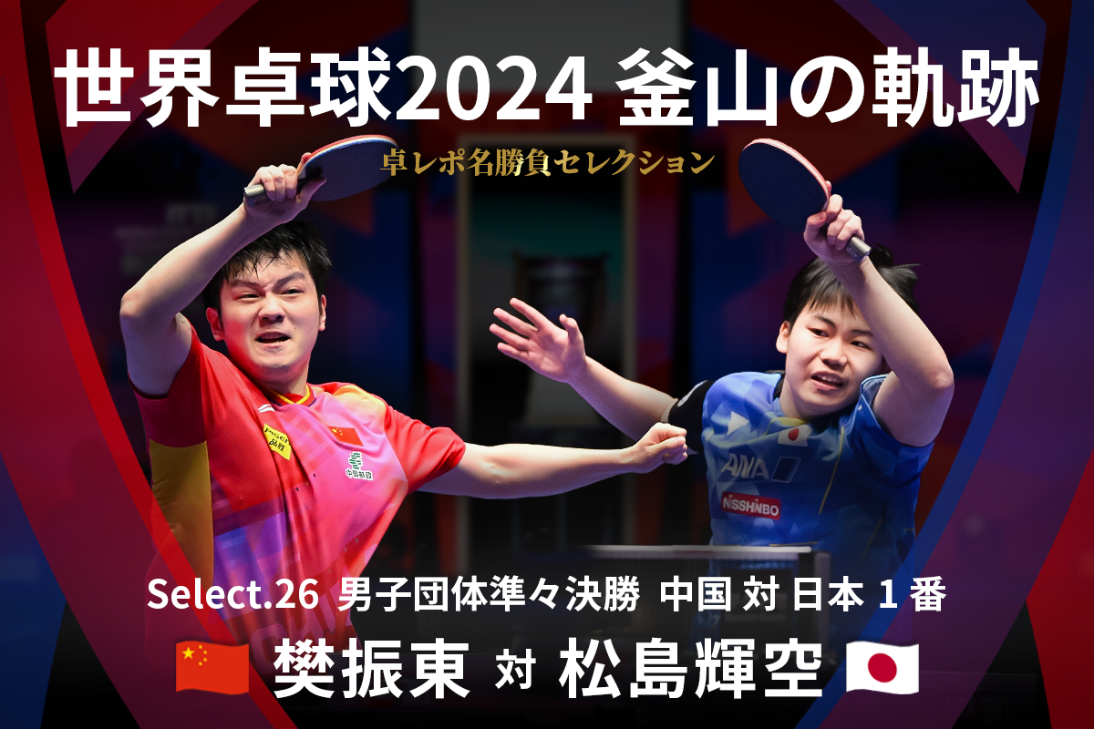 今回は、男子団体準々決勝の中国対日本の1番、樊振東(中国)対松島輝空(日本)の名勝負をお届けしよう。