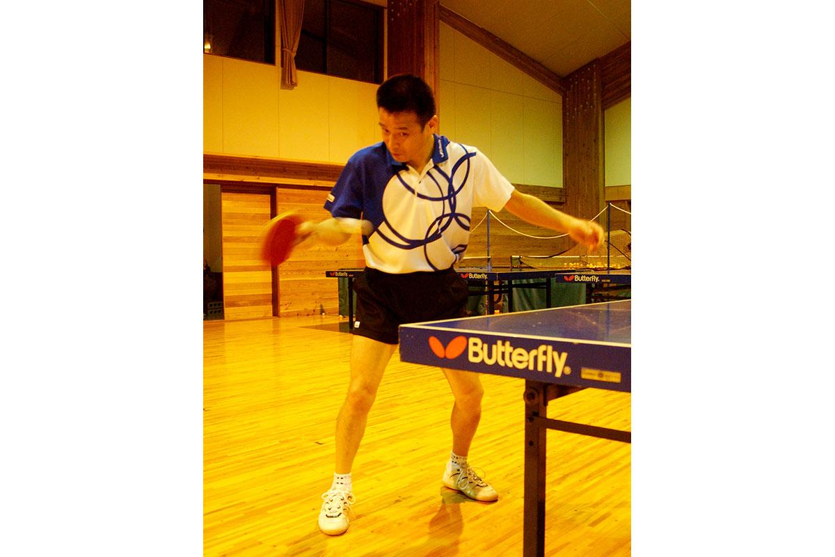長谷川信彦55歳、現役を退いて26年(編集部注:2002年当時)。今でも毎朝ルームランナーでのランニングを30分、バーベルなどを使っての筋力トレーニングを30分行い、さらに週に1回は2時間の長距離ランニングを欠かさない、という。私はそこに「卓球人として、常に最高のプレーを見せる」という長谷川の卓球哲学を感じた。