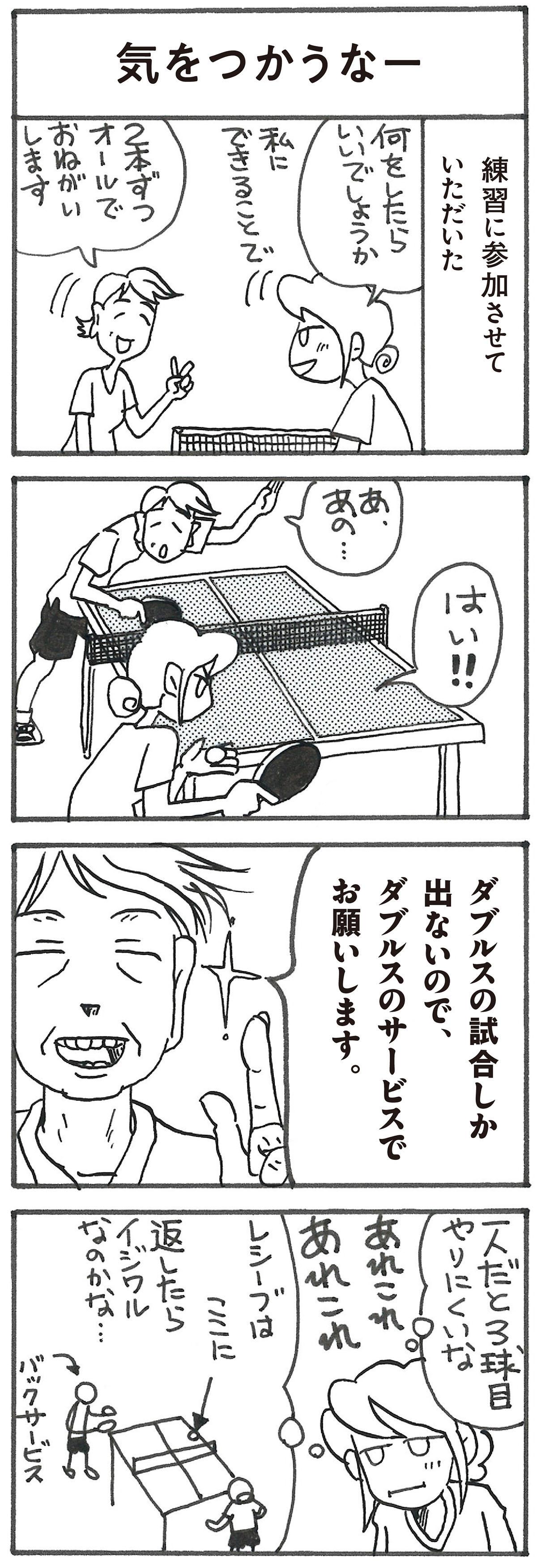 [マンガ] 4コマ漫画「林とら子の卓球あるある」355 気をつかうなー 2025.03.12 ツイート シェア 次回もお楽しみに (^o^)/ 4コマ漫画 「林とら子の卓球あるある」バックナンバー 1話から30話 \この記事をシェアする/
