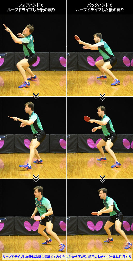 ループドライブ後は台から下がり、次のボールに集中する