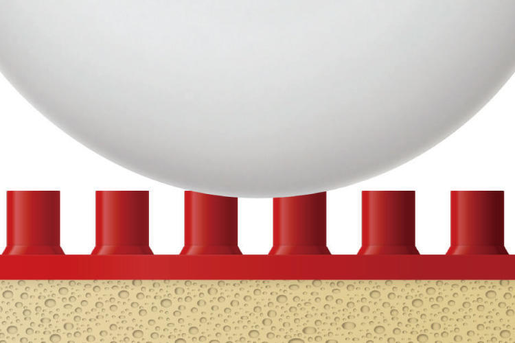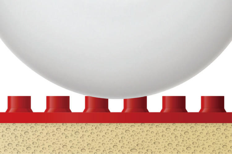 ラバーは「シート」と「スポンジ」でつくられていて、裏ソフトラバーはシートの表面(打球する面)が平らになっています。シートとスポンジの特性や組み合わせによって特徴が変わってきますが、総じて回転がかけやすく、コントロールしやすいラバーです。