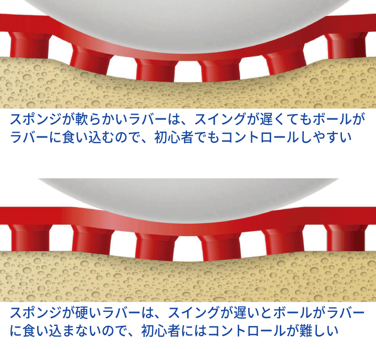 ラバーに使われているスポンジには、さまざまな硬さのものがあります。