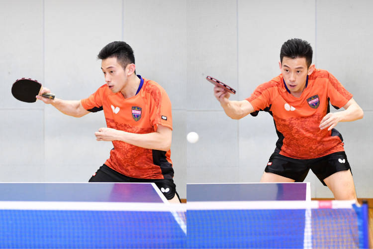台からあまり離れずに、それぞれのラバーの球質の違いを生かしてチャンスをつくり、テンポの速い攻撃を繰り出すのがプレーの持ち味です。