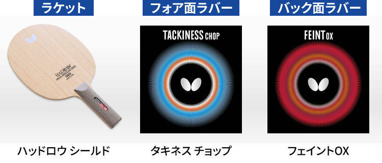 攻撃用シェーク(シェークハンドラケット)の片方の面に裏ソフトラバーを貼り、もう片方の面に表ソフトラバーやツブ高ラバーなど、裏ソフトラバーとは異質なラバーを貼った用具を使います。
