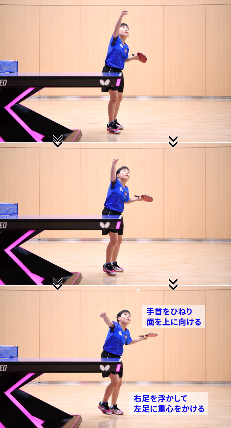 これから紹介するポイントを参考にして、ぜひ下回転サービスをマスターしましょう。