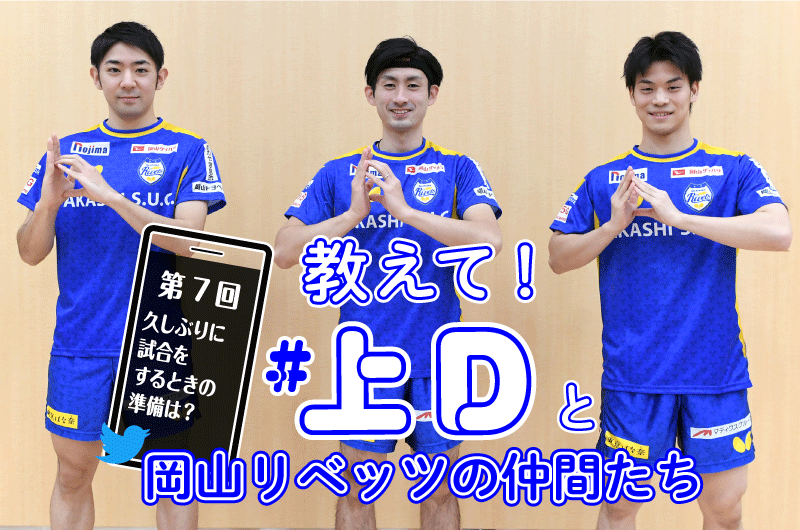 現役トップ選手の中でも「教え上手」として名高い上田仁選手(岡山リベッツ)が、ツイッターで募集した卓レポ読者(と編集部)からの質問に答える「教えて!上D(ウエディー)」。今回は、岡山リベッツのチームメート吉田雅己選手(栃木県スポーツ協会)と町飛鳥選手(鹿児島県体育協会)をゲストに迎え、「久しぶりに試合をするときの調整・準備」について、レクチャーしてくれました。