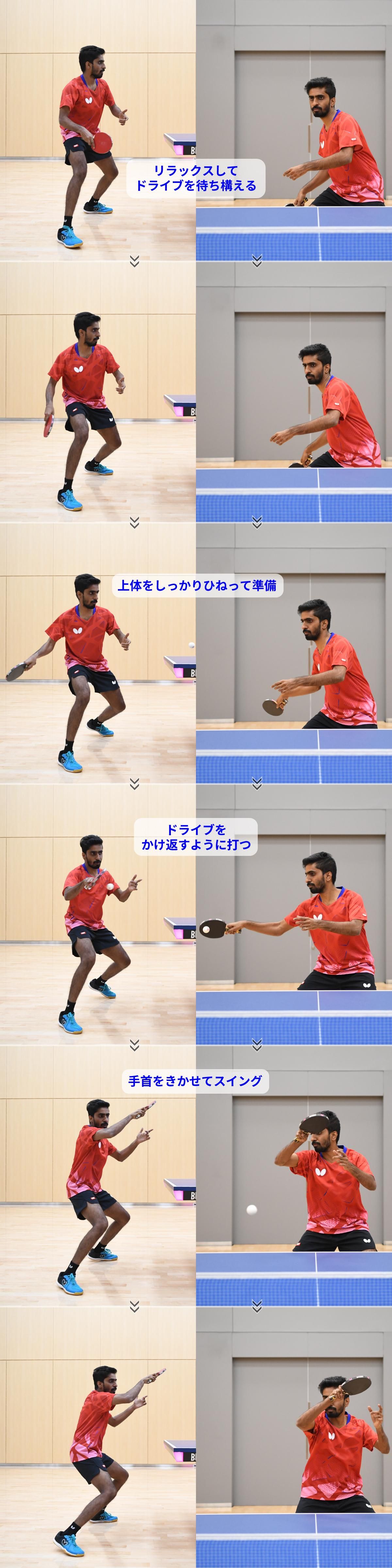 今回は、「自分にとって最も有効な武器」とグナナセカランが自信を持つフォアハンドのカウンタードライブ(ドライブをドライブで打ち返す技術)について掘り下げていきたい。
