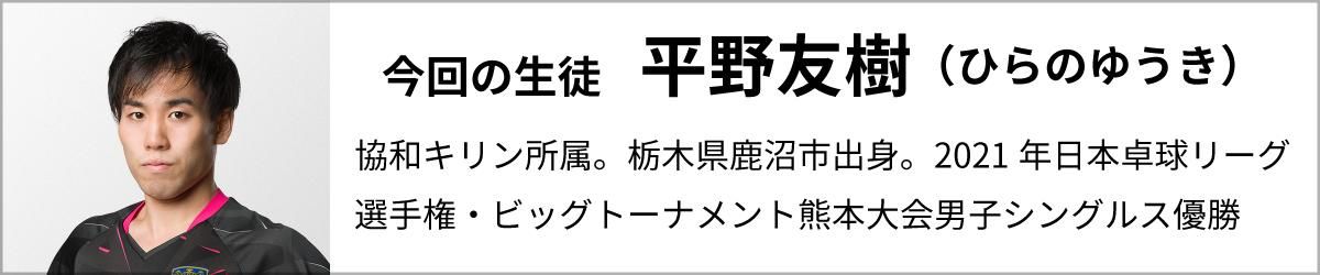 平野:今回、3人からアドバイスを受けて共通して思ったのは、「スイングすること(ラケットを振り切ること)が1番大切」だということ。僕の今の打ち方は、打法的にどうしてもスイングできない打ち方になっていたので、今後、改善していきたいと思います。