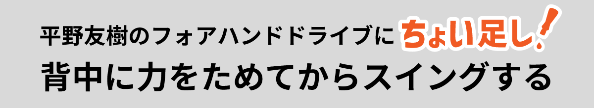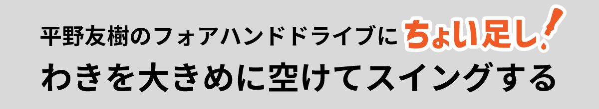 友樹さん(平野)の場合、当たりは強いんですけど、わきの下がちょっと狭いと思うんです。ラケット引くときに思い切り空けてしまうと安定しないんですけど、ある程度わきを空けると、多分もっとボールがぎゅんって行くと思います。