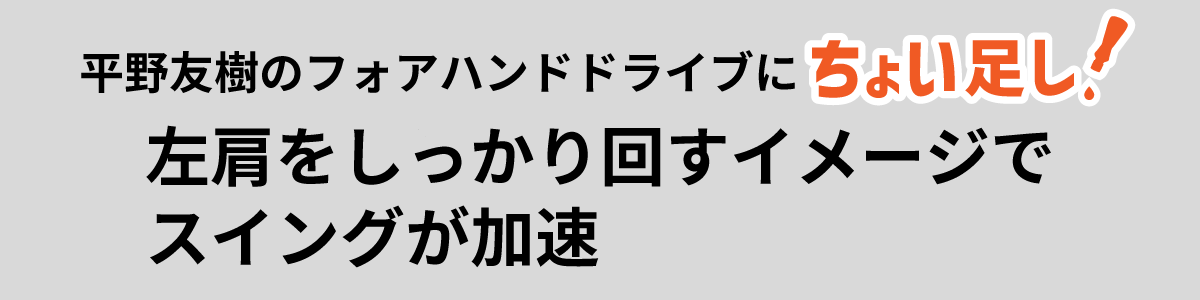 有延:僕が意識しているのは、左肩を(左方向へ)回すこと。そうすると、ラケットの面が開いて、(体が)回転しやすくなります。